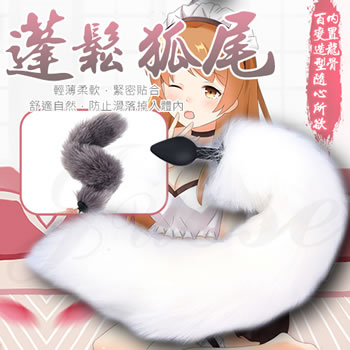蓬鬆狐狸尾巴Cosplay 龍骨後庭矽膠塞-白色-可調整角固定