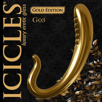 美國進口PIPEDREAM.ICICLES冰晶玻璃奢華金系列-前列腺內側凸點按摩棒-G03